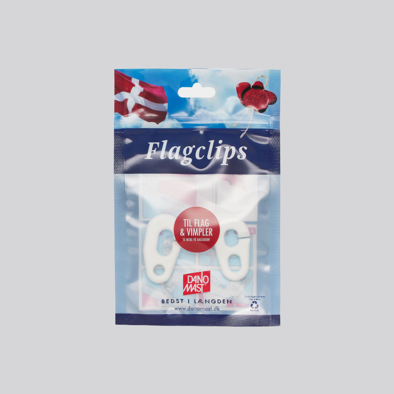 Flagclipsene gør det nemt at sætte flaget, vimplen eller standeren op og tage den ned igen. Clipsene er lavet så dit flag, vimpel eller stander ikke blæser ned.