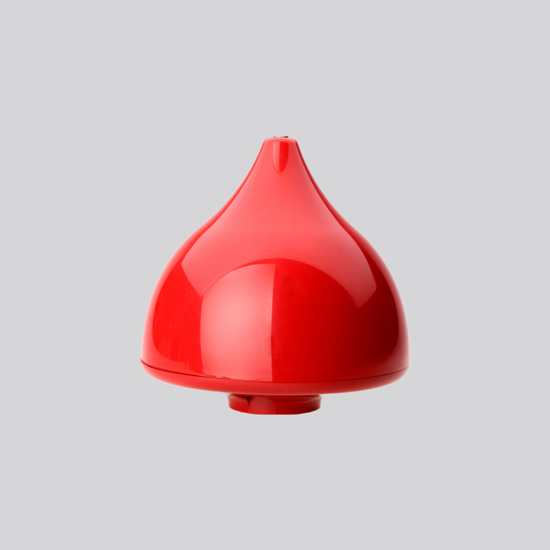 Den røde løgformede flagknop er fremstillet i lysstabiliseret gennemfarvet lyran.